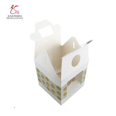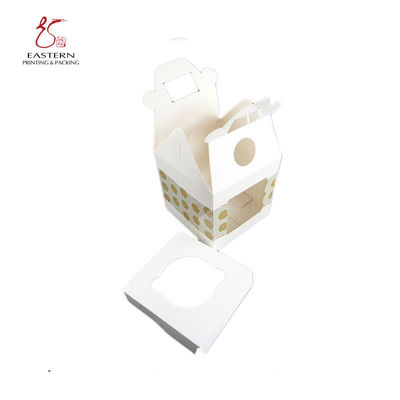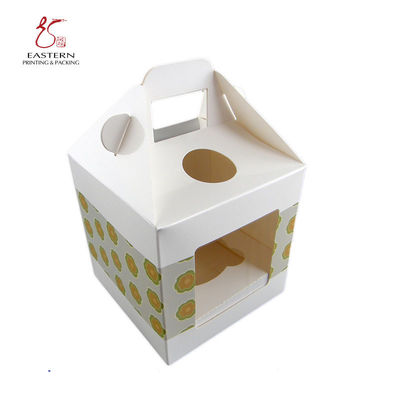 Custom Design white Cupcake packaging paper Box With handle and PET window