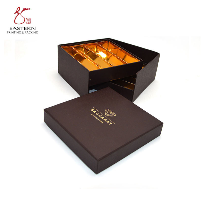 Custom High Quality 2 Layer Chocolate Packaging Paper Gift Box With Gold Insert