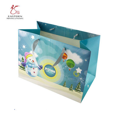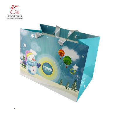 Custom High Quality Printed Christmas Paper Gift Bags With Ribbon Handle