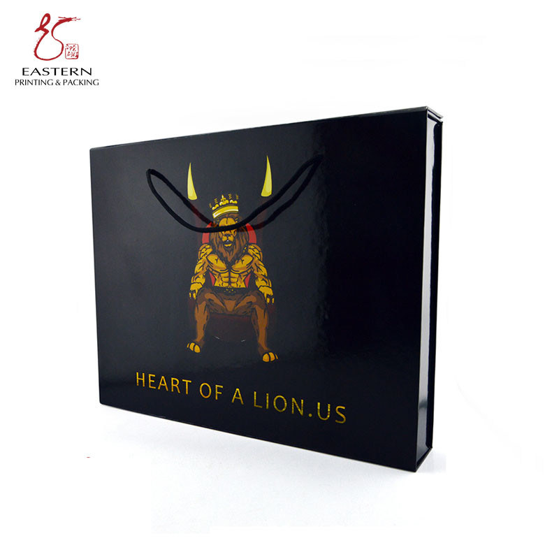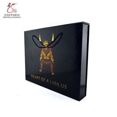 Custom Black High Quality Rigid Cardboard Gift Boxes With Handles