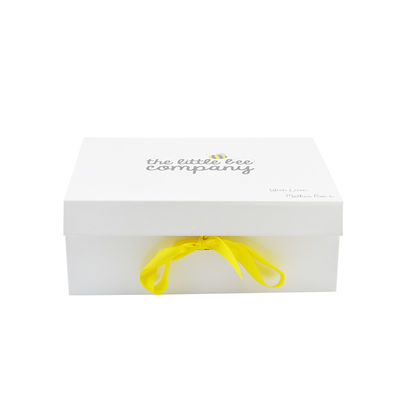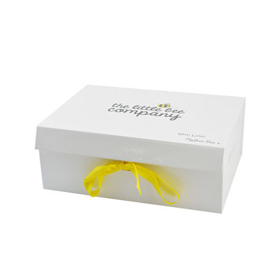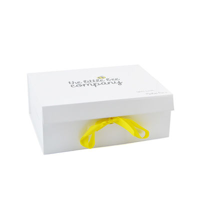 | Material: | 157gsm Coated Paper +1250gsm Gray Board | Name: | Custom Decorative Cardboard Gift Boxes With Yellow Ribbon Closure |