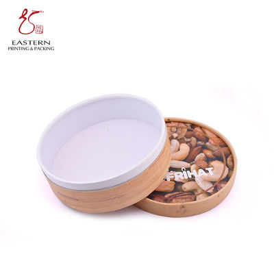 | Material: | 157gsm Coated Paper +1250gsm Gray Board | Name: | Custom Printed Empty Round Cardboard Gift Boxes For Food Packaging |