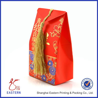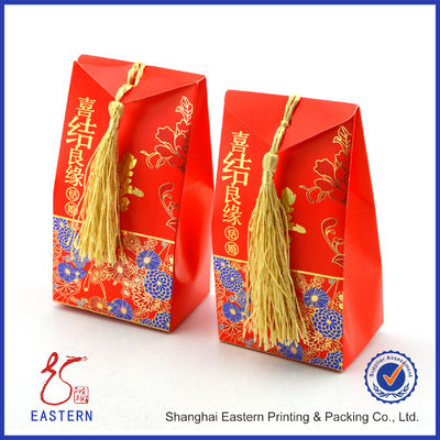 | Use: | Food Packaging | Name: | Custom Printed Beautiful China Wedding Gift Boxes / Candy Box With Tassel |