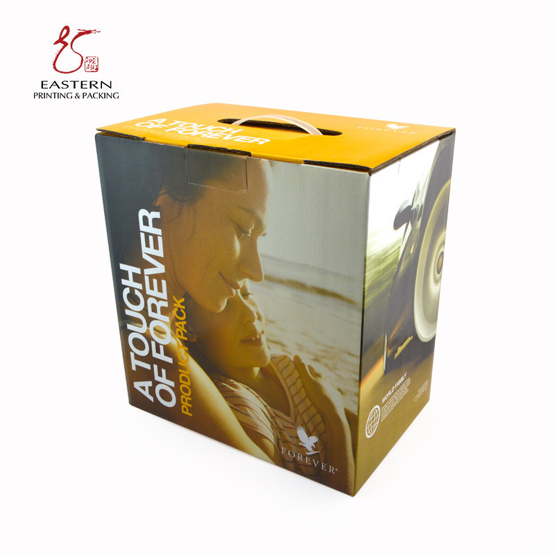 This box is made of corrugated cardboard. The special corrugated cardboard has good support and cushioning effect, which can protect the products well in the packaging. Corrugated cardboard is produced from recycled waste paper, it is a high-quality eco-friendly packaging material with cheap prices and is widely used for packaging various products. In addition, it can also support a variety of processes, such as Color printing, Varnish, Matte lamination, Glossy lamination, Hot stamping, Deboss, Emboss, Spot UV, etc, which can show your LOGO and brand image very well.