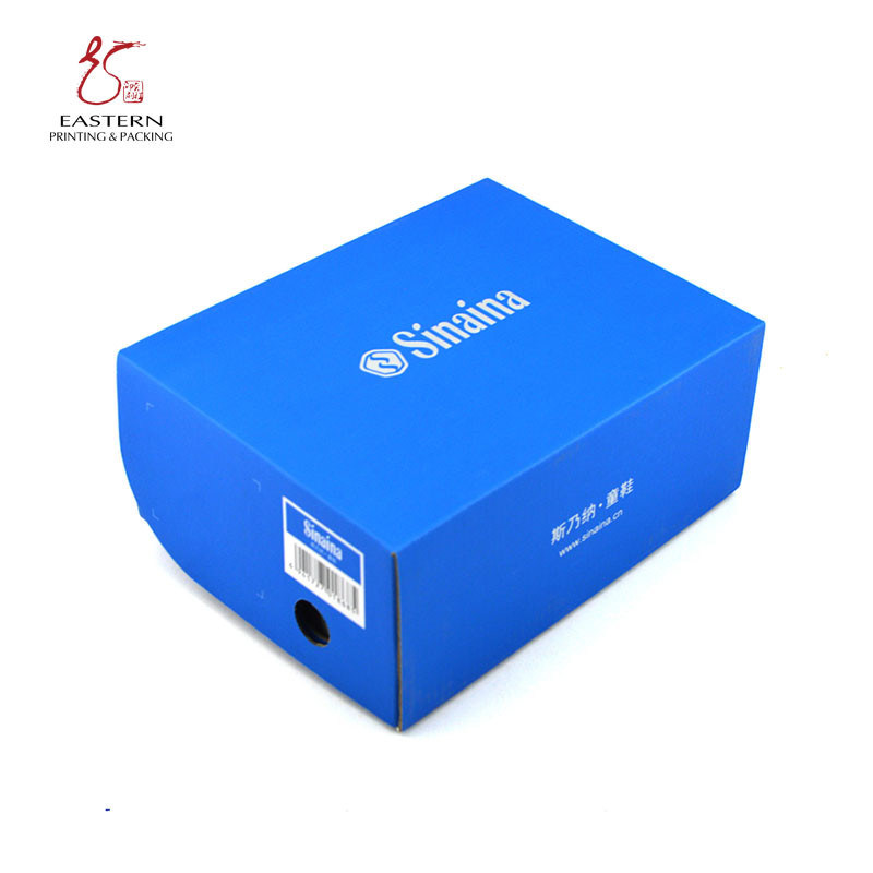 Blue Printed Recycled Corrugated Shoe Box With Silver Logo Paperboard