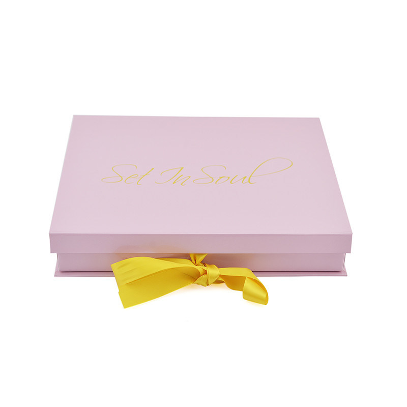 Custom Printed Hard Cardboard Gift Packaging Boxes With Yellow Ribbon