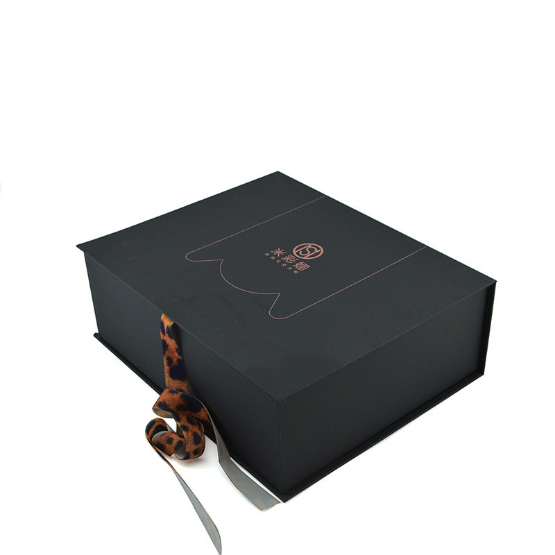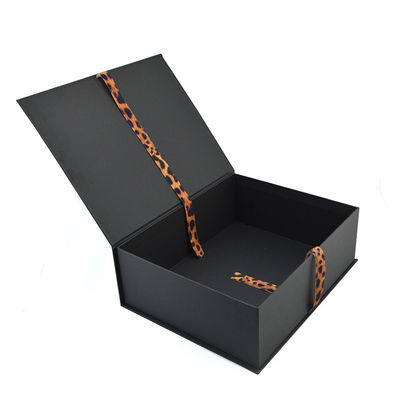 | Color: | White , Customized | Product Name: | Black Paper Card Packaging With Leapard Ribbon |