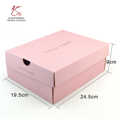 Custom Printed Pink One Piece Corrugated Shoe Packaging Boxes With Kraft Inside