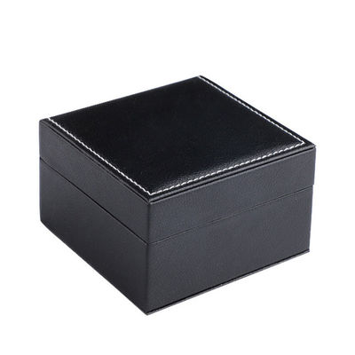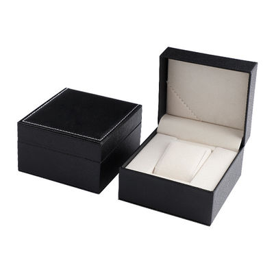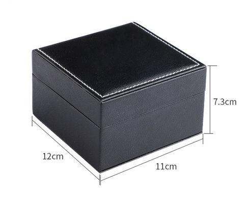 Black Leather Watch Boxes With Cream Color Velvet Inside 120x110x73mm Customized Logo